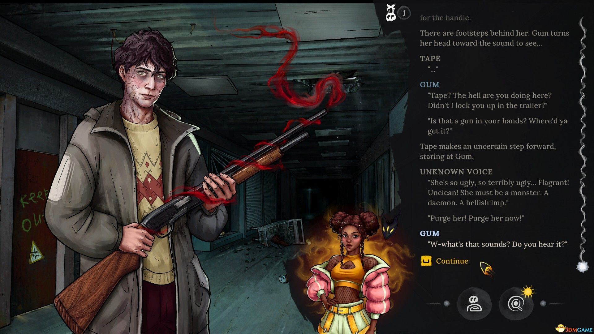 《恶魔逼我做这游戏》是一款叙事驱动的时间循环视觉冒险游戏。你化身为一只名为 Dark Wisp 的无形幽灵,被迫进入美国中西部小镇 Red Hives,控制和附身于一群菜鸟驱魔者,通过低语影响他们选择,解开恶魔入侵、血祭仪式与世代秘密交织的谜团。游戏采用非线性叙事与多条时间循环机制,玩家可反复试错,寻找拯救最大数量角色的最佳路径。