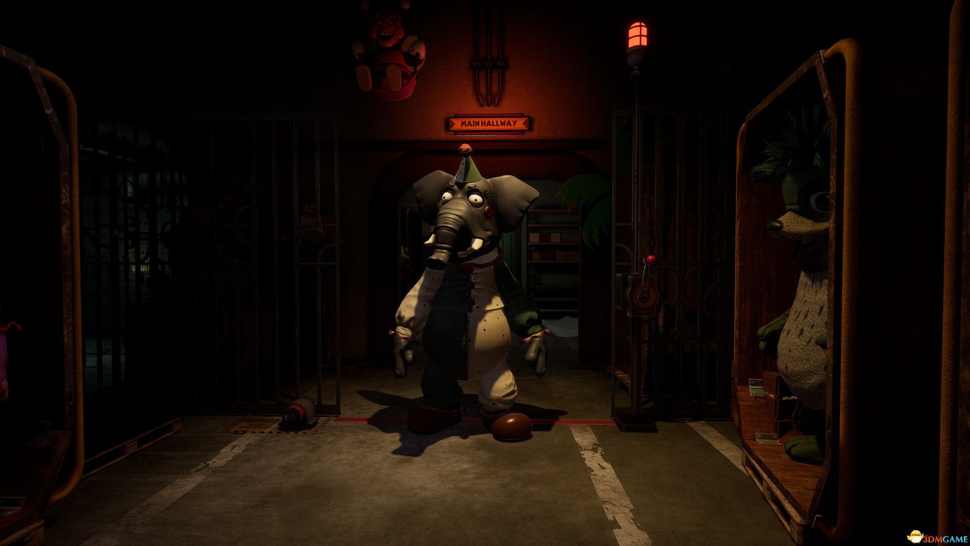 本游戏的核心特色是其主要敌人“模仿者”(The Mimic),这是一个试验型骨骼机器人,能够伪装成任何装扮,潜伏于阴影并附身于玩家最深的恐惧。游戏场景设定在废弃的Murray’s Costume Manor中。