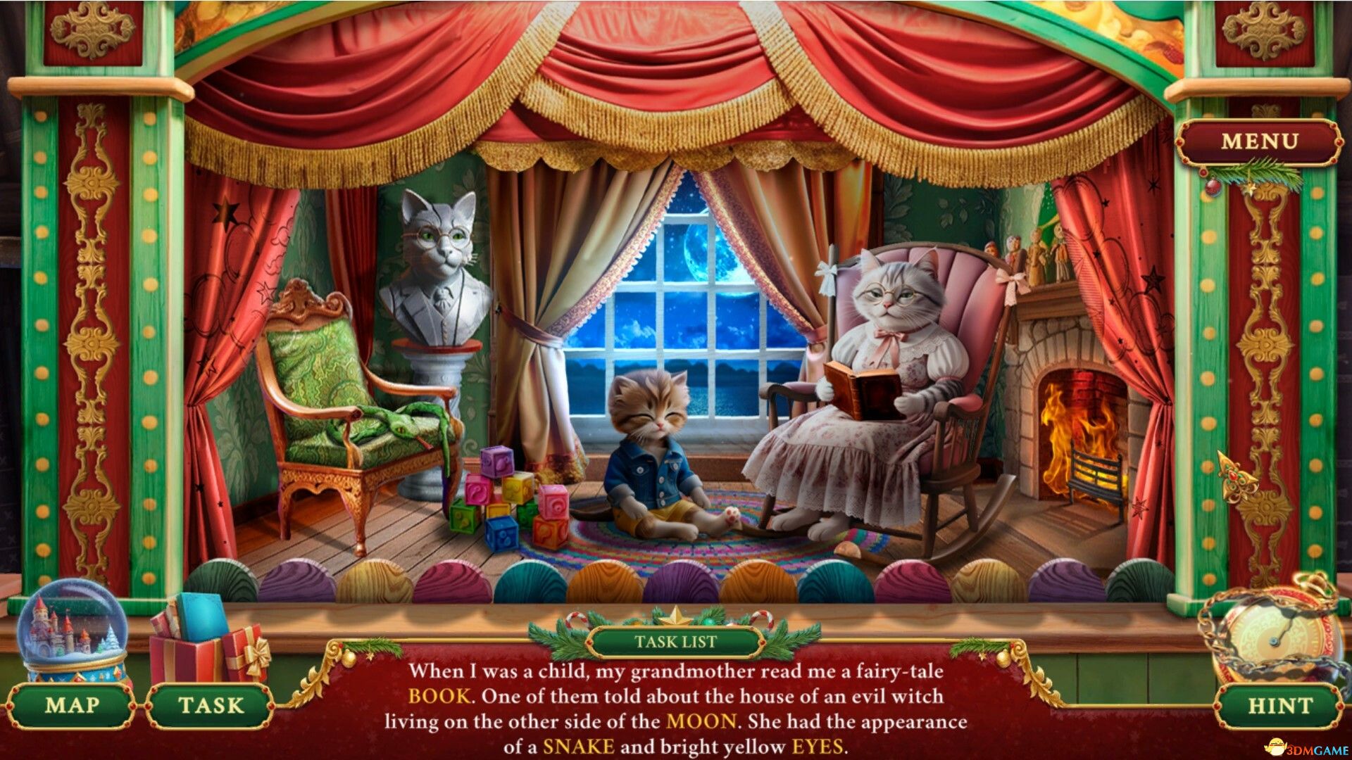 《圣诞故事:克拉拉与引导之星》是一款节日主题的隐藏物体解谜冒险游戏。在这个充满奇幻与温馨氛围的故事中,年轻的克拉拉将踏上一段冬日旅程,当一股来自暗黑维度的邪恶力量 Mouserinks 出现并将她的父亲变成无生命的玩具时,她必须展现她内心尚未觉醒的勇气。