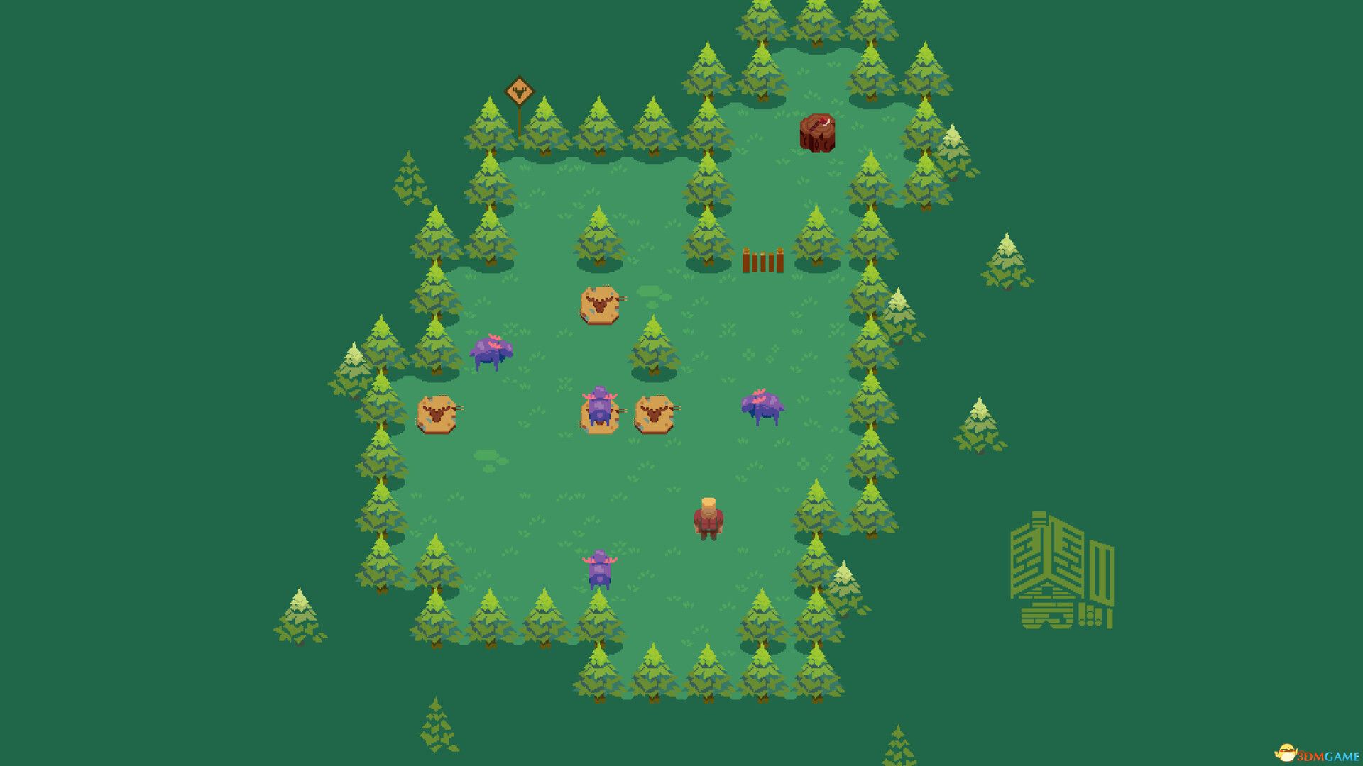 玩家扮演迷路的伐木工人,在森林中通过回合制的移动来解谜。核心玩法在于触发驼鹿的反应,巧妙规划路线以引导驼鹿向特定方向移动,同时必须时刻注意避开愤怒驼鹿的践踏路径。