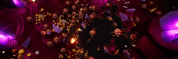 玩家在快节奏的俯视角射击中,使用狙击炮、火箭筒、核弹、激光、火焰喷射器等多种武器,对敌人和环境进行物理破坏,实现对成群怪物的清场。