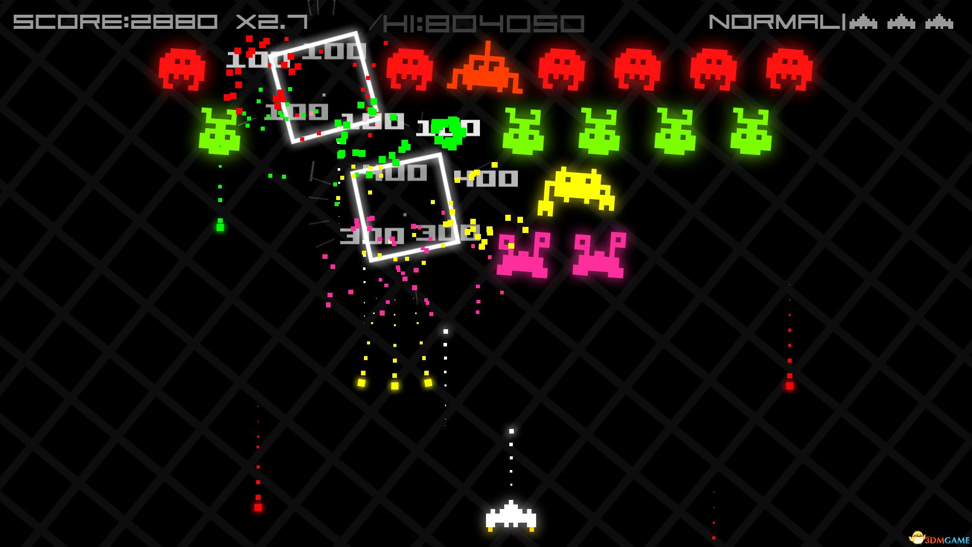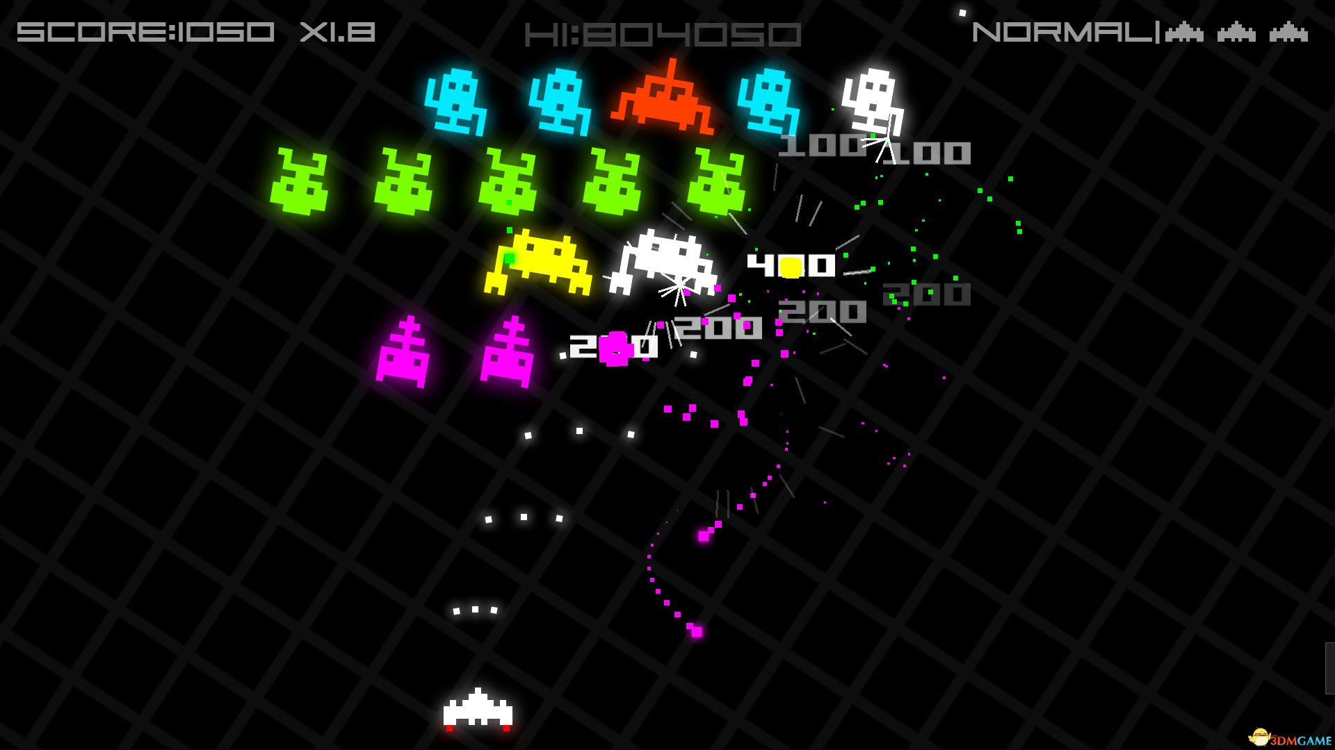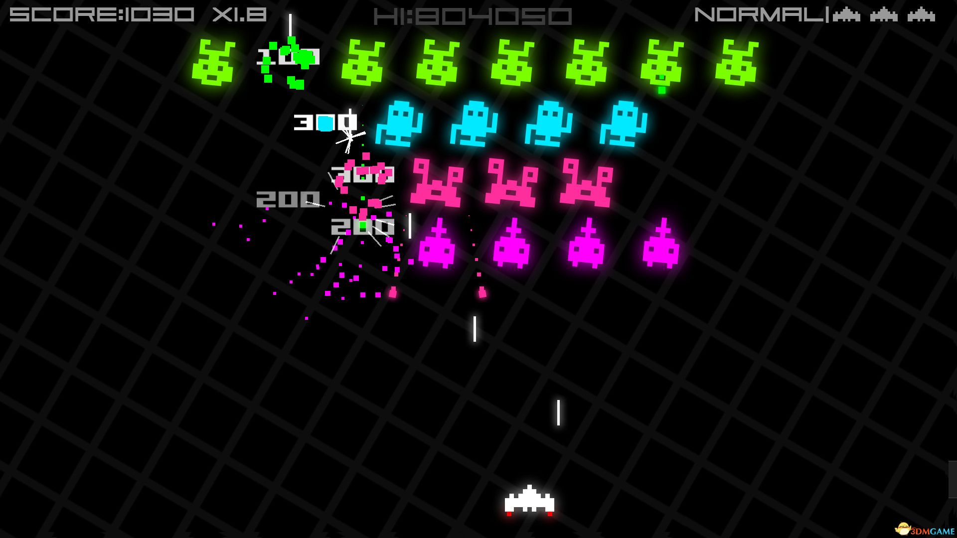 玩家控制飞船,面对一波波外星入侵者,目标是尽可能多地消灭敌人并刷新高分。游戏提供多种模式,通过击落敌人可获得拾取道具和武器增强火力。